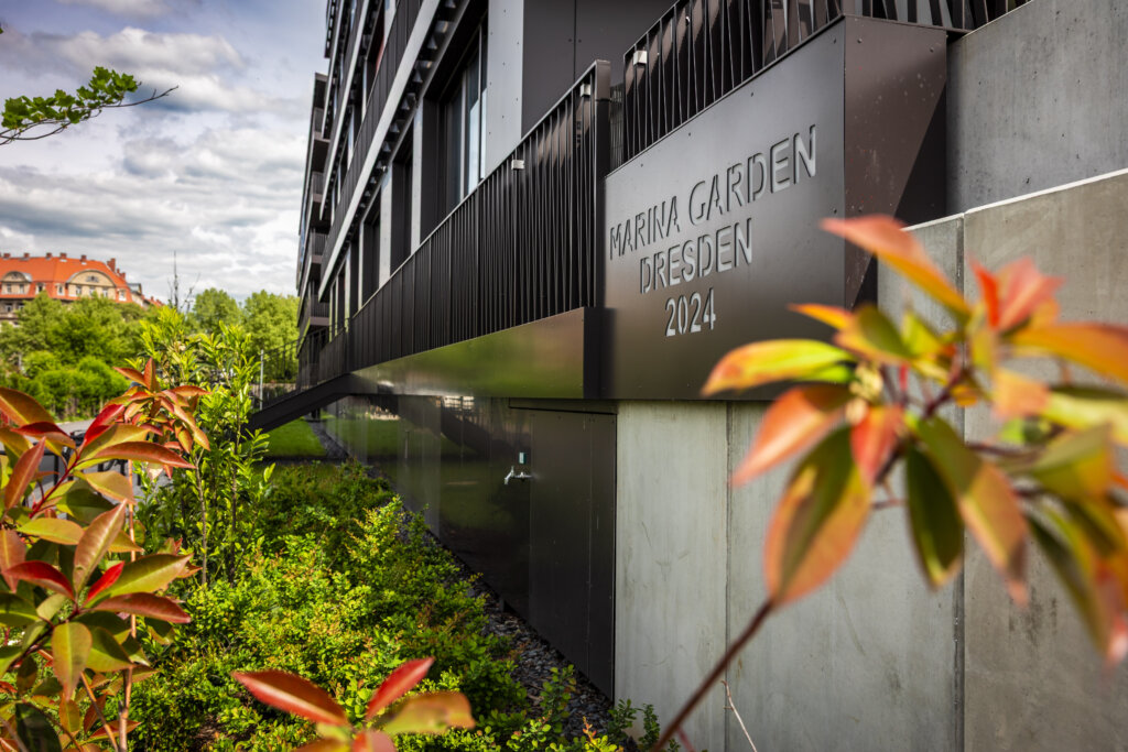 Jede Wohnung in Marina Garden ist mit einer Loggia oder Terrasse ausgestattet, die einen direkten Zugang zum Freiraum bietet. Von hier aus genießen die Bewohner entweder den spektakulären Blick auf die Elbe oder auf das gepflegte Grün des großen Innenhofs. Der hohe Glasanteil in der Fassade sorgt für viel Tageslicht und lässt zugleich das Gebäude auch von außen in einem modernen, einladenden Licht erscheinen. So fügt sich Marina Garden passend in die architektonische Landschaft des Dresdner Stadtteils Leipziger Vorstadt.